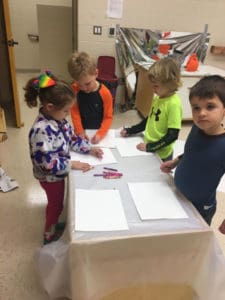 LOVE is the answer! The consensus among the S.T.P. students was that we should celebrate love 365 days a year, not just on February 14th. We began our STEAM adventure with some fresh air and silly exercise…to love our hearts too…before we settled into our theme on a warm and fuzzy heart filled polar fleece blanket. All agreed, while feeling the blanket, that love makes us feel warm and fuzzy too! We sang a love song the Purple Owls were so kind to share and brainstormed the many ways we can show love to each other. From hugs to kisses and holding hands to helping hands, the responses were many and creative, which was the perfect way to introduce our activity of making homemade paper for love notes.